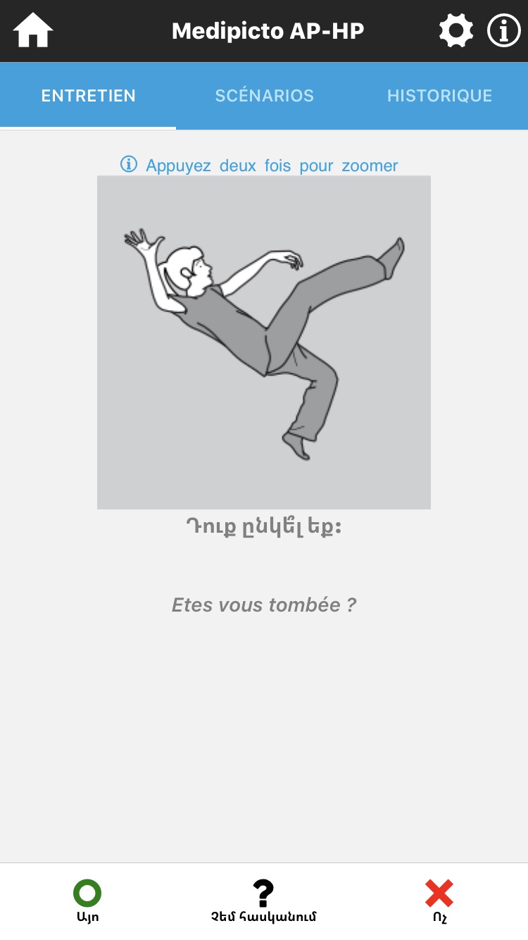 A diffuser largement et sans restriction, non seulement dans les services d’urgence, mais également dans les consultations médicales, hospitalières ou pas. C’est un outil qui peut rendre de grands services à une population large de personnes en situation de handicap (IMC, aphasiques, déficiences intellectuelles, maladies diverses, surdité, etc.). Cet outil permet également de lever “la barrière ” de la langue dans les entretiens médicaux. Elle peut également être utilisée à l’étranger, pour dialoguer, il suffira de configurer la langue parlée par le soignant.