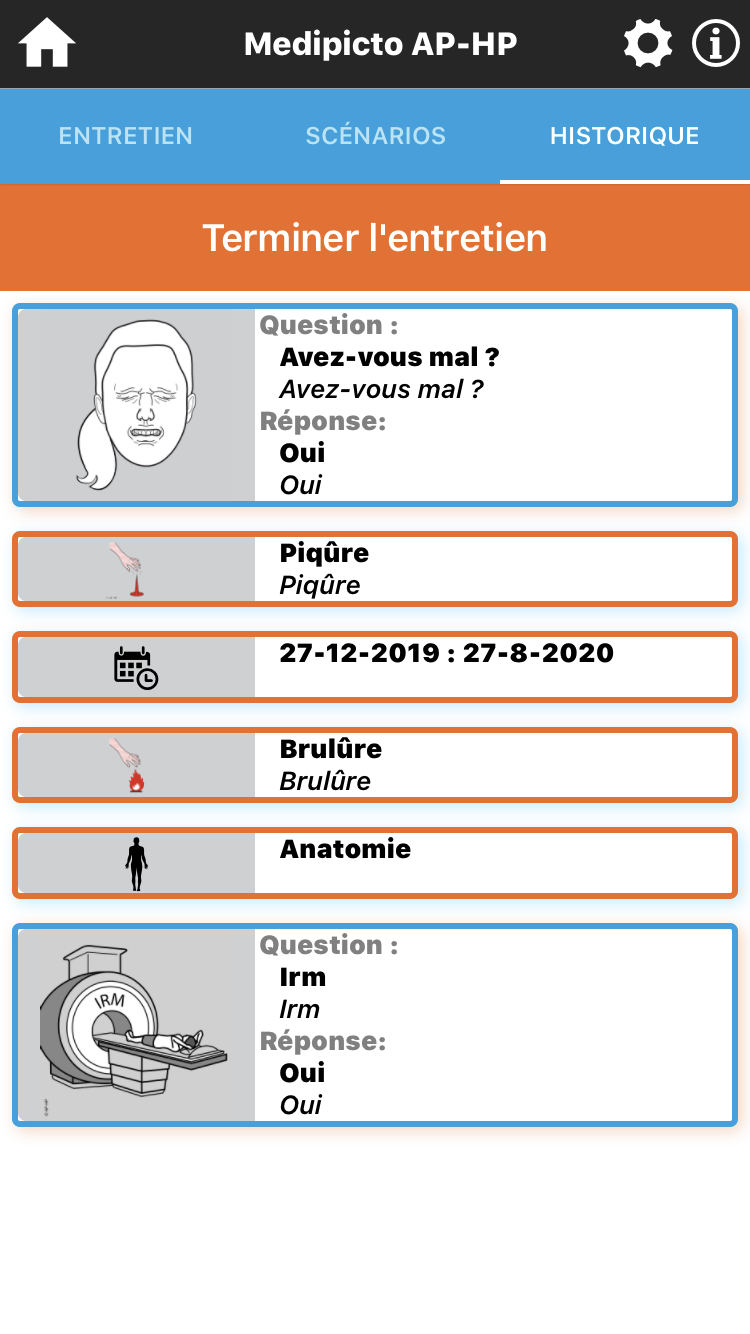 Medipicto est prévu pour faciliter les échanges entre le patient et le soignant. On aura même pu lui faire connaitre avant l’hospitalisation, pour qu’il en ait pris connaissance sur son propre smartphone et puisse l’utiliser pour poser des questions, avoir des renseignements (menus multilingues) ou apporter des réponses.