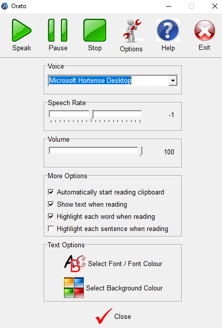 Il existe de nombreuses solutions permettant de vocaliser par voix de synthèse un texte préalablement sélectionné, accompagnées ou non d’options permettant de visualiser la progression de la lecture au sein d’un texte. Celles-ci sont en générales existantes dans les logiciels payants d’aide à la lecture, mais souvent minimales ou absentes dans les logiciels gratuits. Compatible Windows 10 – à l’exception d’un message d’erreur sans incidence quand on souhaite changer de voix – la version portable du logiciel Orato utilisable sur tout document dont le texte est sélectionnable, réunit les options les plus attendues : choix de la police, taille et couleur utilisée dans la fenêtre de lecture, couleur de fond, couleur et mode de surlignage, choix de la voix de synthèse, débit et volume.