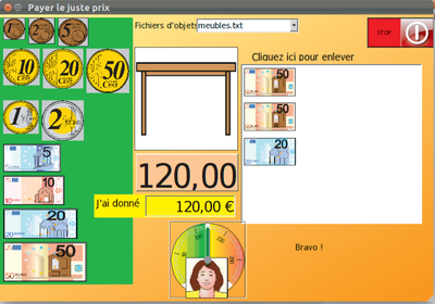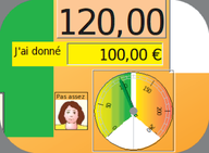 Un clic souris sur la monnaie incrémente la somme affichée à droite de l’écran : un texte s’affiche et la synthèse vocale énonce :