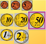 Un cadre accompagne le survol du curseur de la souris sur les pièces et billets et la synthèse vocale énonce leur valeur.