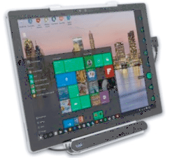 Pour les utilisateurs penchés sur le côté, PC Eye mini devra être également penché de manière à conserver cet alignement, ce qui nécessite souvent d’opter pour un matériel de type tablet PC monté sur support orientable.