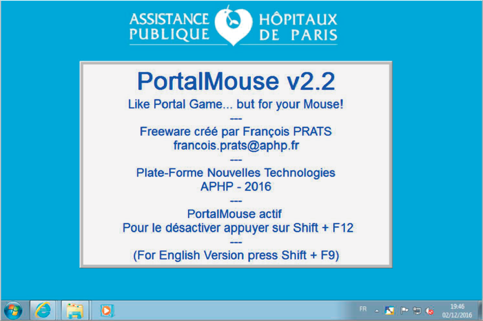 PortalMouse est un logiciel créé en novembre 2016 par François PRATS, étudiant en troisième année à l’Institut de formation en Ergothérapie de Hyères les Palmiers. Il a été développé lors d’un stage au sein de la Plate-Formes Nouvelles Technologies de l’hôpital Raymond Poincaré de l’Assistance Publique des Hôpitaux de Paris.