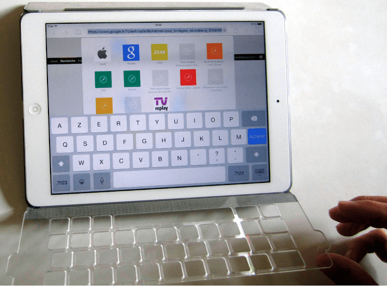 NB : si un guide doigts est nécessaire (à faire fabriquer), le clavier configurable n’a pas de prédiction alors que le clavier iOS, si, mais le guide doigts est alors inadapté.