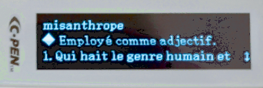 ReaderPen, peut afficher et lire la définition d’un mot surligné. Des dictionnaires sont fournis pour le français (Cordial), l’anglais (Collins) et l’espagnol (Larousse). Il est possible de consulter l’historique des définitions (utile pour les révisions).