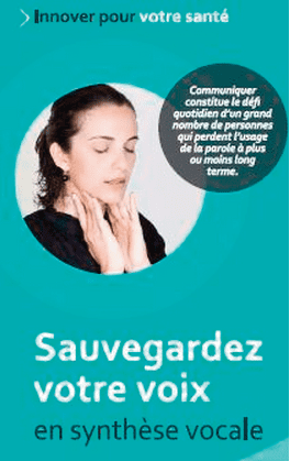 A l’intention de personnes atteintes d’une pathologie qui peut à court ou moyen terme affecter la voix, Voxygen vient d’éditer une plaquette “Sauvegarder sa voix en voix de synthèse” (jointe à ce numéro).