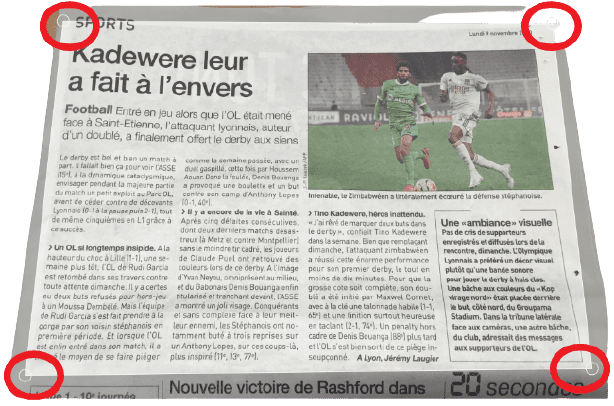 Afin que la Reconnaissance Optique de Caractères (OCR) puisse s’opérer correctement, le cliché devra être pris perpendiculairement au document, dans de bonnes conditions d’éclairage et en vérifiant l’absence d’ombre portée par la main ou l’appareil. Cadrer et prendre la photo.