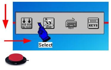 Plusieurs modes d’accès sont proposés utilisant un ou deux contacteurs à brancher sur une souris adaptée ou une interface USB pour contacteurs.