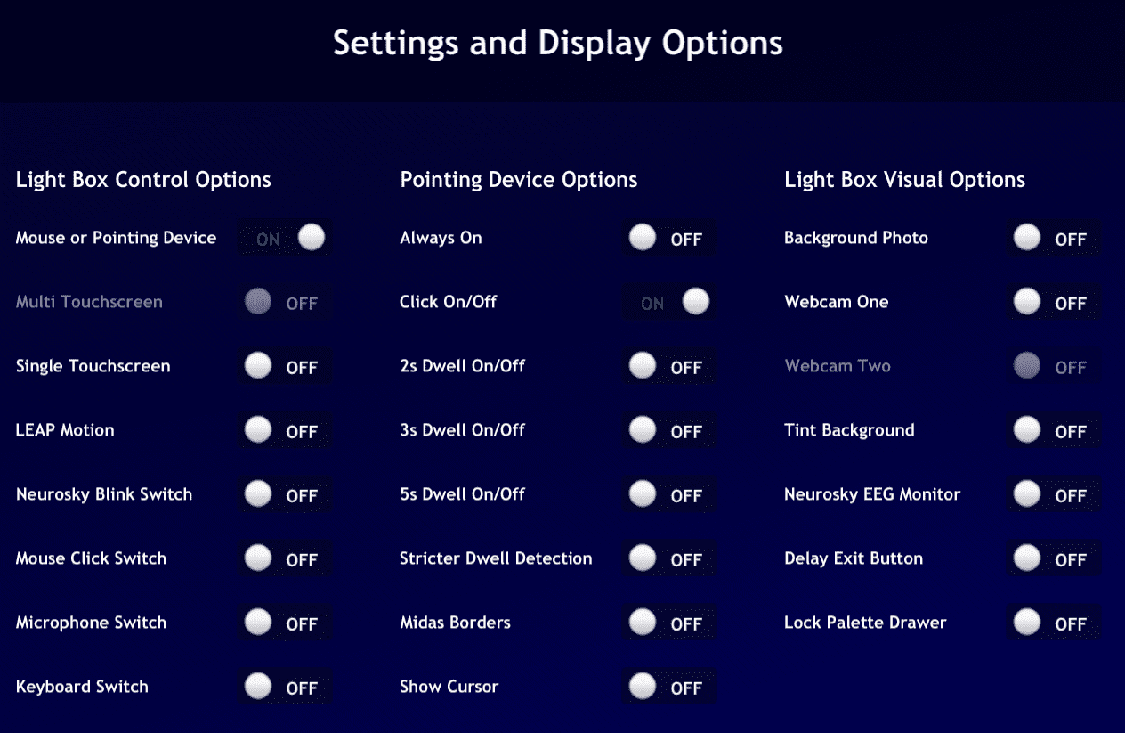 Light Box : utilisation en mode tactile ou par contacteur