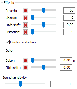 Le logiciel permet également de jouer avec la voix, c’est-à-dire générer des effets sonores déclenchés par la voix ou des sons de gorge captés de préférence depuis un microphone séparé : menu « Activity », « Playing with the voice ».