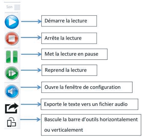 Les cinq boutons à gauche permettent de choisir la couleur du texte, la police de caractères (celles installées sur l’ordinateur), mettre le texte en gras, italique, souligné…