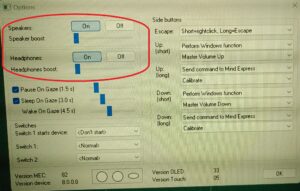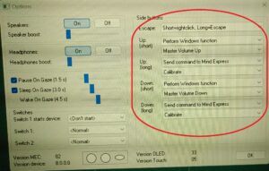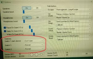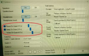 Dans ce même menu d’options, on peut également mettre l’appareil en veille en cochant « Sleep On Gaze » et en déterminant le temps de fixation. Deux clics sont émis avant la mise en veille. Cette option est intéressante pour ménager la batterie et permettre une utilisation tout au long de la journée sans nécessité de recharge.
