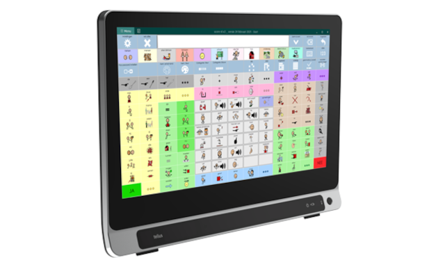 Développés par Jabbla, entreprise implantée en Belgique qui crée des solutions logicielles et matérielles de CAA) depuis de nombreuses années, les Tellus sont des appareils tout-en-un. Ils intègrent une tablette Windows protégée par une coque aluminium, une plaque de fixation à l’arrière qui permet l’installation en fixe ou sur fauteuil roulant, le logiciel Mind Express 5, un contrôle d’environnement, des hauts parleurs puissants et un écran partenaire. Ils offrent de nombreux moyens d’accès : tactile, souris, pointeurs alternatifs ou contacteurs. Le Tellus i6 intègre en sus une poursuite oculaire Tobii.