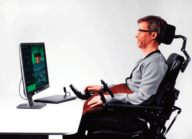 La nouvelle génération du PC Eye, plus ergonomique, ne nécessite qu’un seul port USB sur l’ordinateur pour brancher la commande oculaire. Il est équipé d’une entrée pour brancher un contacteur/bouton et d’un microphone multidirectionnel, ce qui offre la possibilité d’utiliser la voix ou un mouvement résiduel pour déclencher une action.