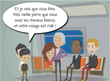 1/ Dans le bus, Adam laisse gentiment sa place à une dame âgée. Elle le remercie. Mais il répond : « je vous laisse ma place parce que vous êtes vieille, vous avez des rides, etc. ».