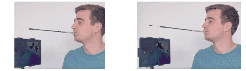Le déploiement de la tige s’opère par le souffle, (aspiration / expiration), sans efforts : une simple pression/dépression buccale suffit. (le mécanisme est très sensible).