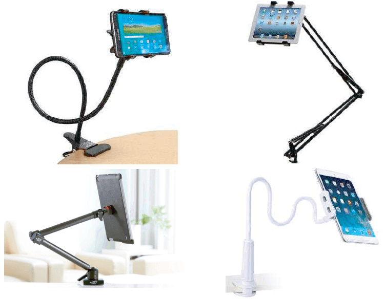 TubusOne étant destiné aux personnes présentant le profil d’une tétraplégie, il reste à déterminer le positionnement de la tablette face à l’utilisateur. Il existe sur le marché des aides techniques plusieurs supports pour tablettes adaptables sur châssis de fauteuils roulants. Le marché grand public propose également une grande variété de supports articulés, ou montés sur flexibles, adaptables par serre joints sur plan de travail, ou tablette de fauteuil roulant.
